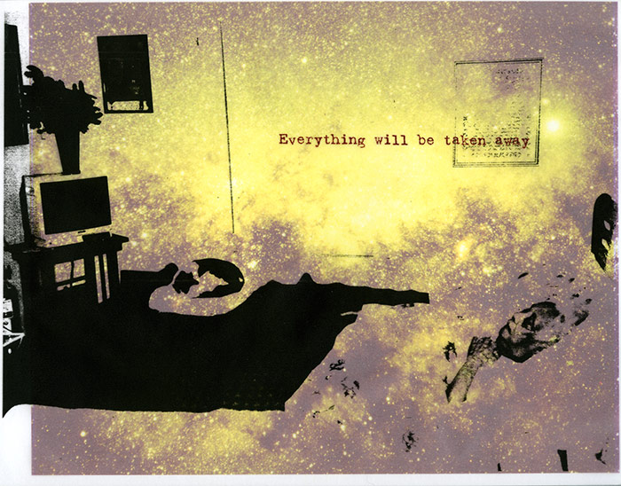 Everything #2.6, 2003. Photocopied photograph on translucent vellum, superimposed on inkjet print photograph and overprinted with inkjet text; combined in vinyl paper protector. 11” x 8½”, (21,6 cm x 27,9 cm). #03001.6. Venice Biennale installation, Central Pavilion in the Giardini della Biennale, Gallery 12. Collection Adrian Piper Research Archive Foundation Berlin. © APRA Foundation Berlin.