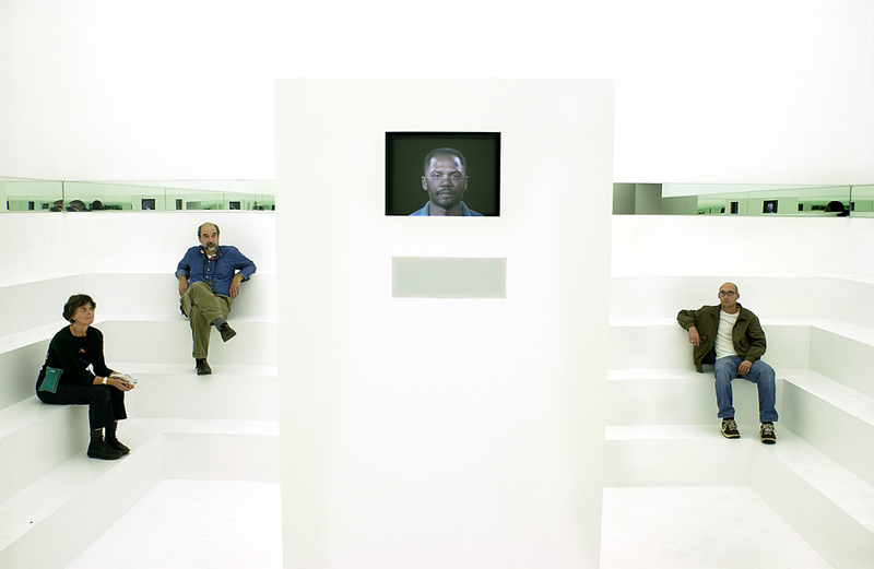 What It’s Like, What It Is #3 (1991; video installation: wood construction, mirrors, lighting, video discs, music soundtrack, dimensions variable). Collection Museum of Modern Art, New York. Photo credit: David Campos