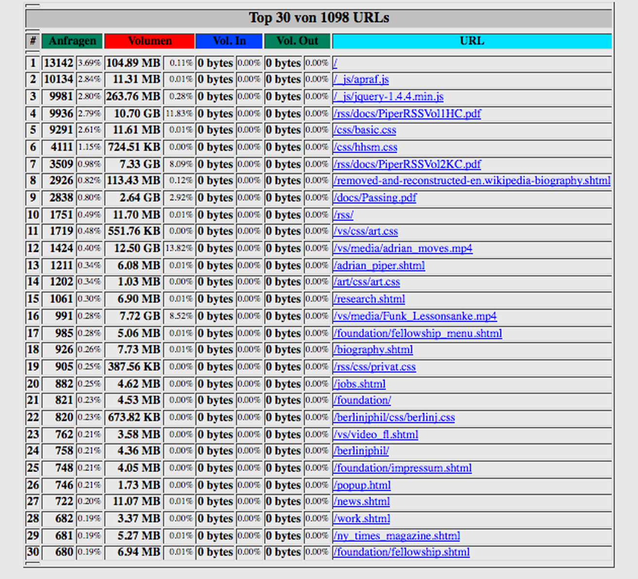 APRA Foundation Berlin Webalizer Report: Top 30 URLs for July 2018. Lines 1-3 and 5-6 denote programming code.