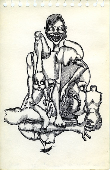 Rapidograph and/or pencil on paper, each 8½ x 5½" (21.5 x 14 cm). Detail: #31 of 35, India ink and